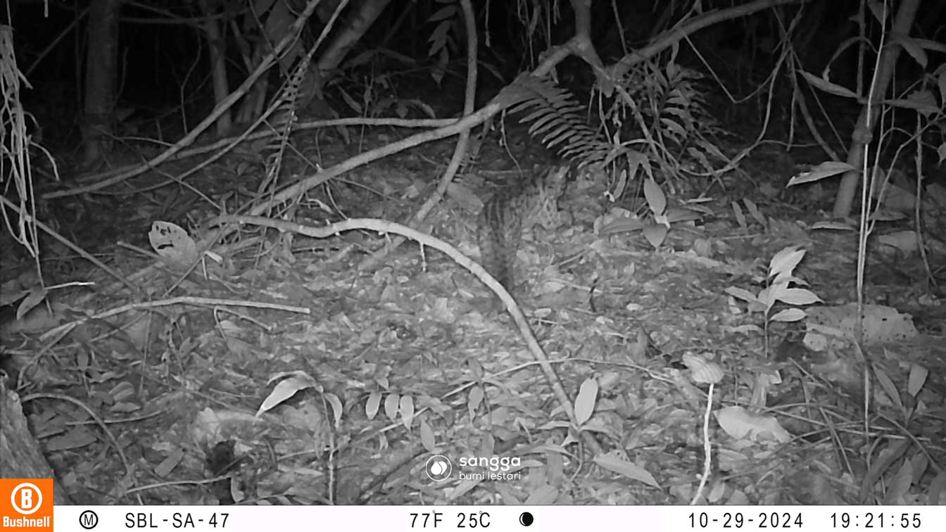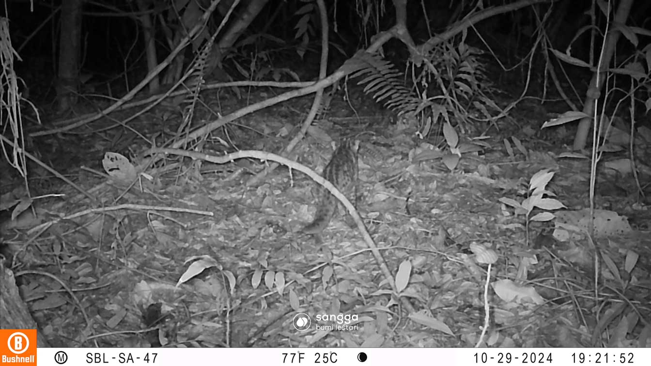 Highly adaptable and mostly nocturnal, though often active at dusk and dawn. In West Kalimantan it readily uses forest edges, peat swamps, plantations, and village mosaics, often near human settlements. The Sunda Leopard Cat has been seen travelling along trails, ditches, and plantation roads.